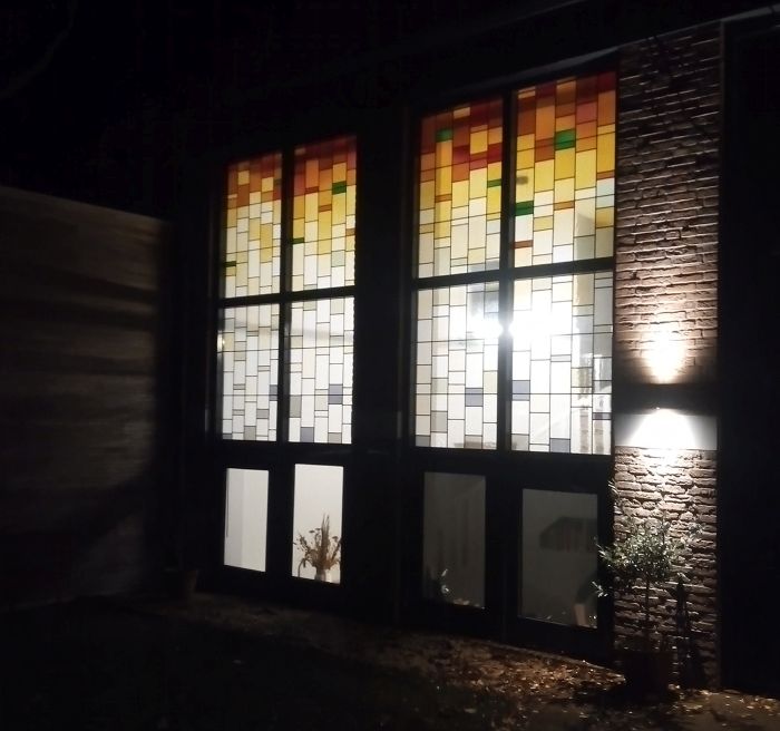 | Glas in lood in dubbelglas, 's avonds | |