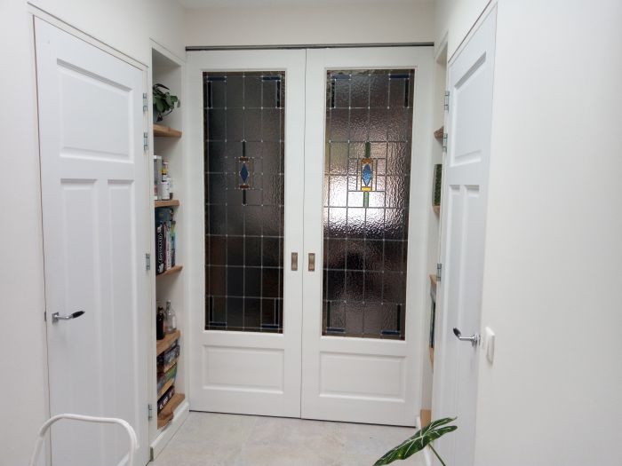 | Traditioneel glas in lood ontwerp in kamer en suite deuren | |
