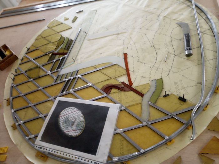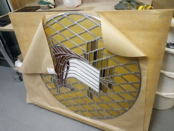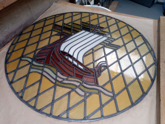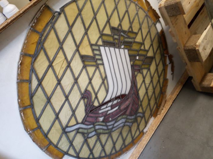 | Glas in lood gerestaureerd en nog ongepatineerd | |