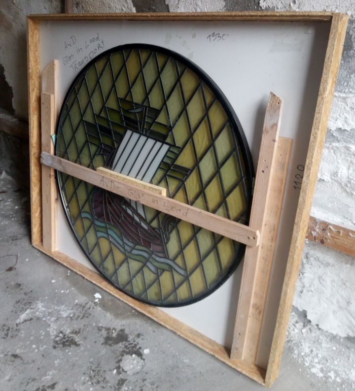 | Glas in lood gerestaureerd en in isolatieglas in trappenhuis gemonteerd |