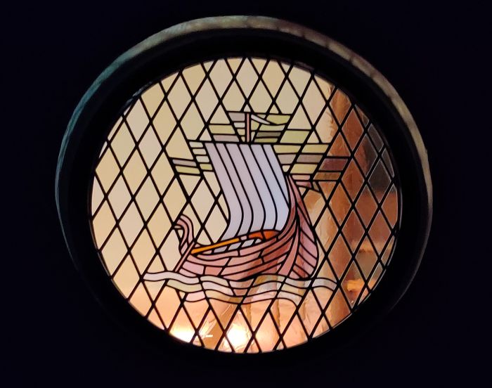 Voor een particuliere opdrachtgever in Worms (D) isoleerde AvD-Glas dit ronde glas in lood paneel in het trappenhuis.