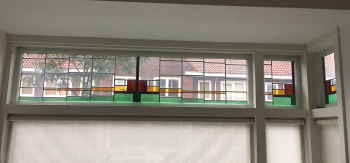 en tijdloos glas in lood, passend bij nieuwbouw en een strak interieur.