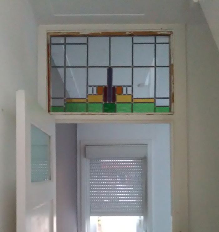 | Glas in lood in isolerend dubbelglas boven de voordeur |