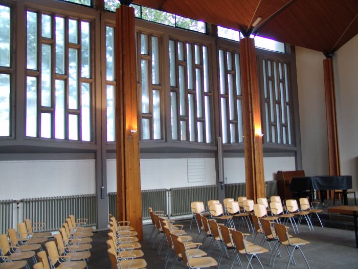 Van de Vrijzinnige Geloofsgemeenschap Amersfoort kreeg AvD-Glas de opdracht voor het nieuw maken van 45m2 nieuw glas in lood