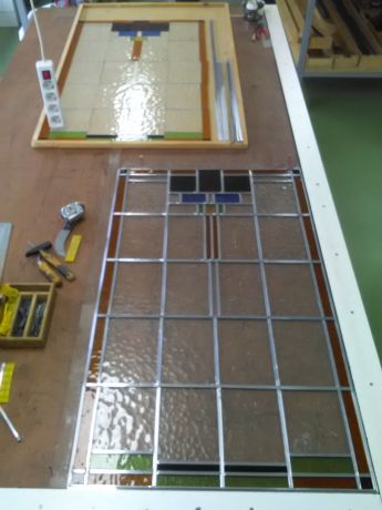 Voor een klant in Soest bouwde AvD-Glas 5 bestaande en 2 bijpassend nieuwe glas in lood panelen tussen isolatieglas in.