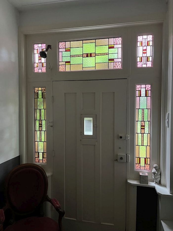 | Glas in lood in isolerend dubbelglas rond de voordeur |