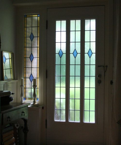Neem contact op voor advies en een vrijblijvende offerte voor glas in lood in en naast uw voodeur, enkel of in isolerend dubbelglas, ook inbraakwerend.